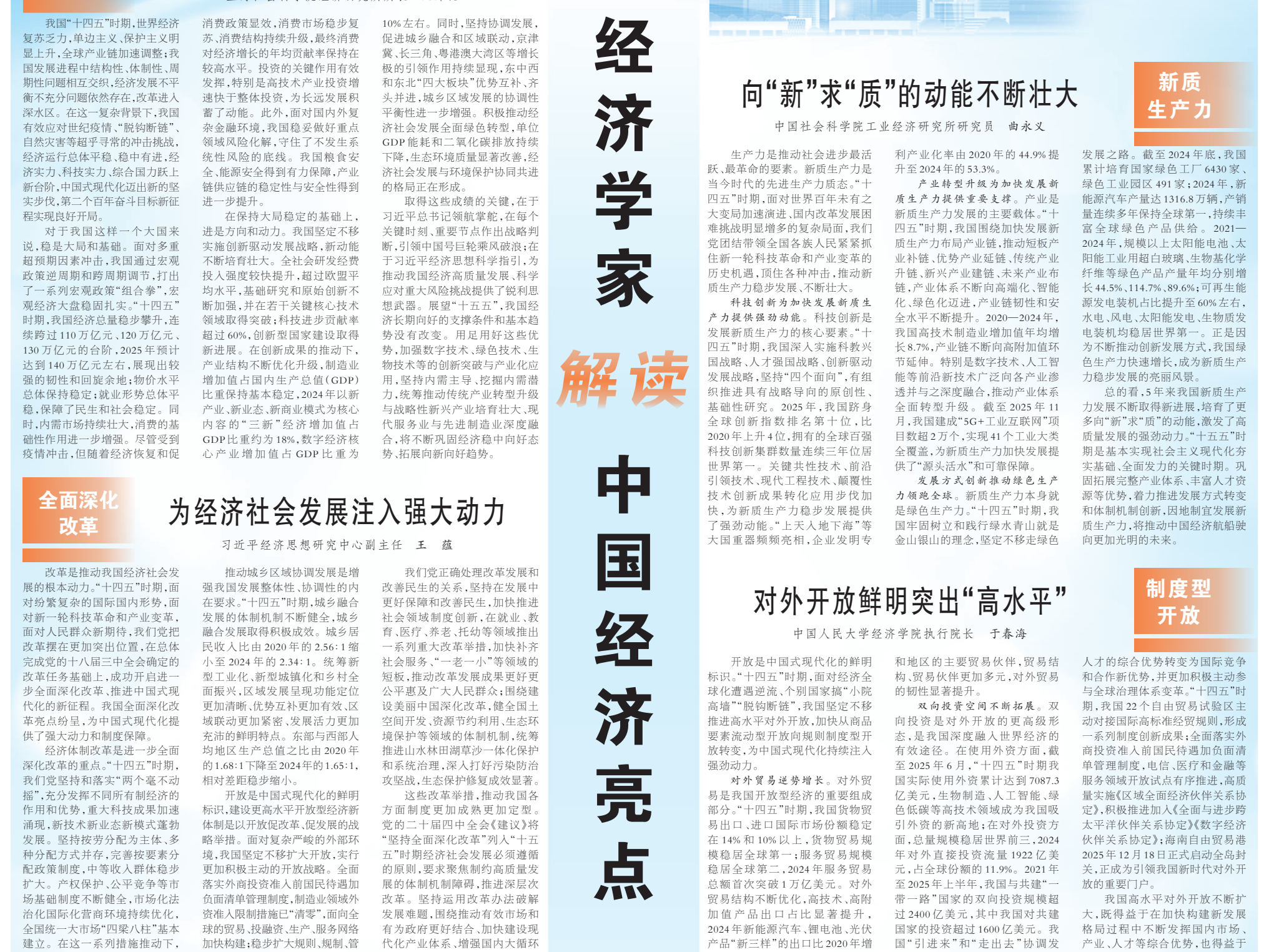 人民日报整版刊文:经济学家解读中国经济亮点