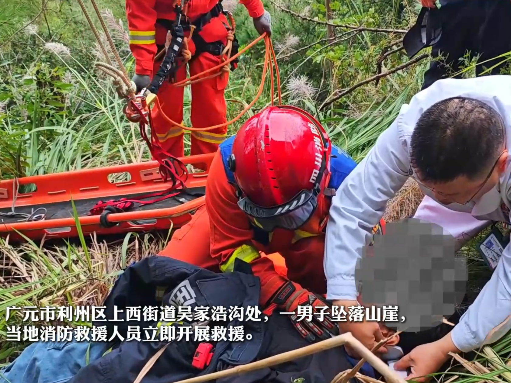 C视频丨男子故地重游跌落山崖晕倒,消防员攀岩施救