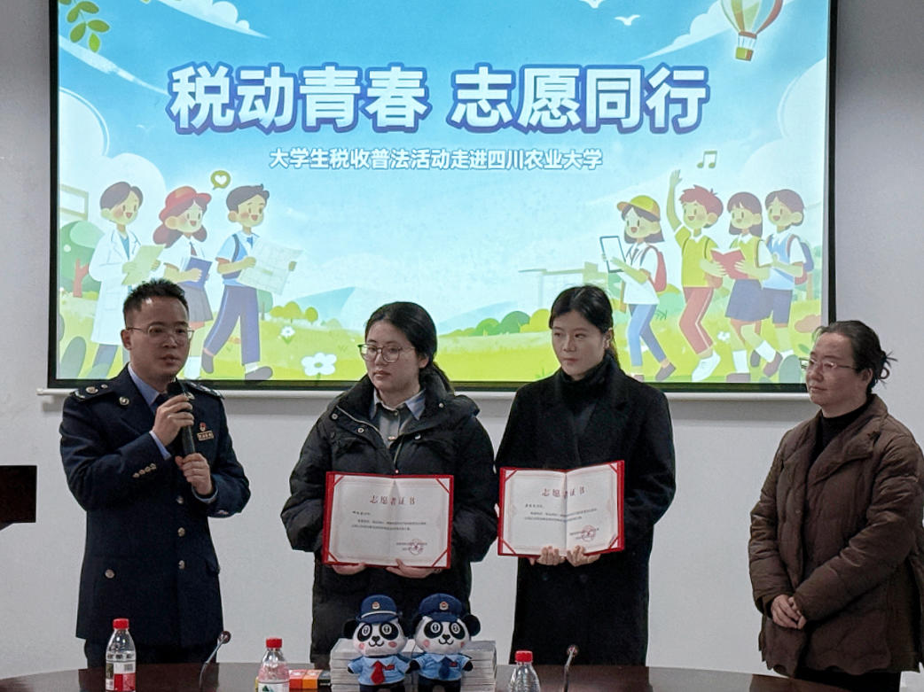 新成员+2!雅安税务部门为川农大学子颁发志愿者证书