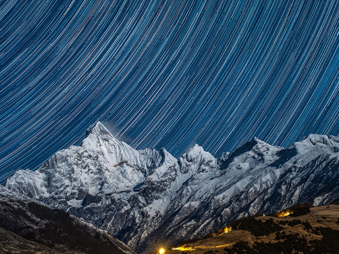 C视觉|星空与雪山同框!C视觉签约摄影师四姑娘山拍下绝美星轨大片