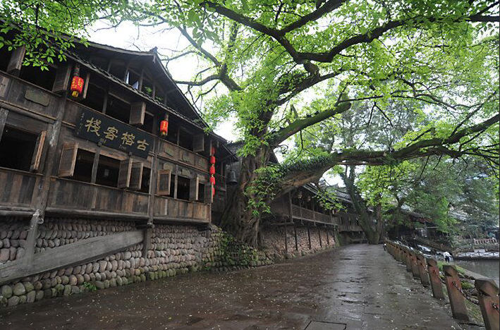 柳江古镇的一绝是有百年古树100余株,榕树、楠木等珍稀树木占据半壁天下,枝繁叶茂,像一把打伞撑在石板路上,这在四川乃至全国古镇中也是独特的。