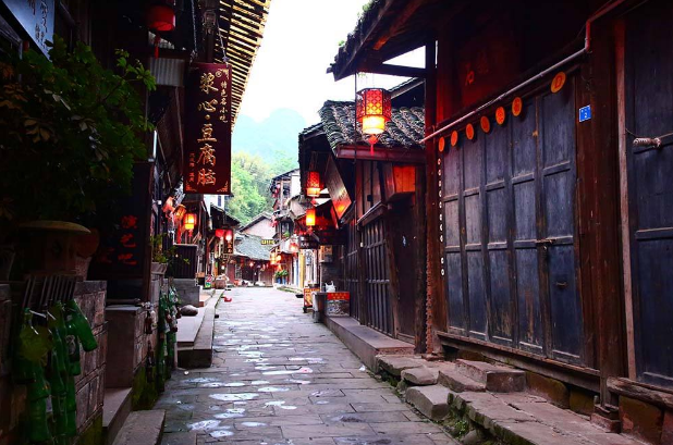 古镇至今已有八百多年的历史,石板长街是镇上柳、姜两姓族人合资修建的一条古代商业街。难能可贵的是,如今的石板街虽然商店民宿林立,却仍旧散发着古香古色的味道,没有过多的现代商业气息。