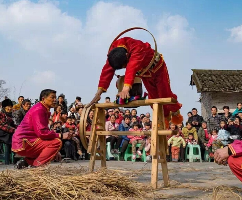 那时年纪小,并不记得那八仙桌究竟重有几层,“狮子”最终又是怎么从高高的桌子上下来的,也绝想不到用“壮美”这样的词汇去形容当时的情景,只记得曾有胆大调皮的小伙伴向“狮子”扔花生壳,被大人狠狠的胖揍;更记得小学同学“张粑粑儿”曾疯狂地钻进内场,从高桌下爬过,引起人们一阵惊呼和怒骂……