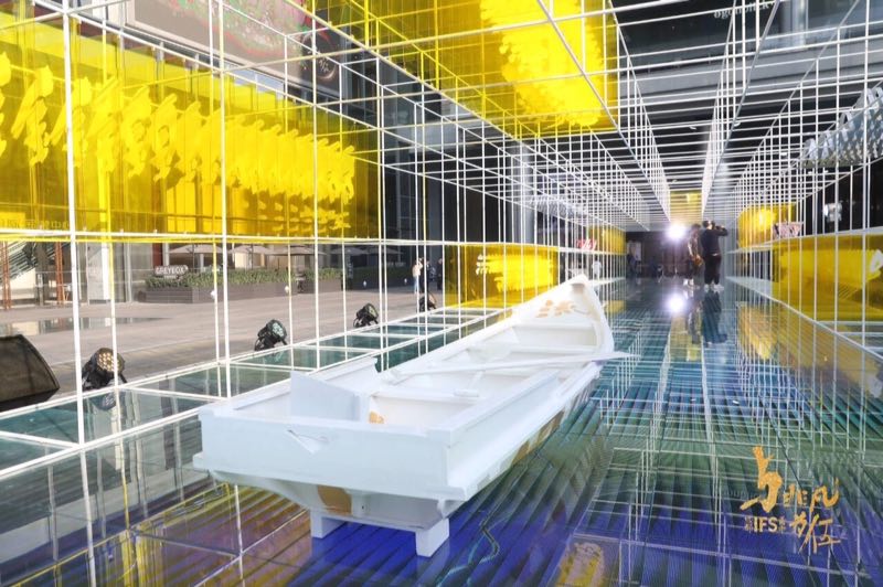 所有的非凡,都由历史成就,在这欢庆的时刻,更值得回溯过往。在一层古迹广场,成都IFS联合当代艺术家、书法家黑凹共同创作了「非常名·成都流」时光走廊艺术装置,带你在声、光、影构建的时光走廊中穿越古今。它不仅是一个令人赞叹的艺术创作,更是助你拍下美丽照片的绝佳场景。