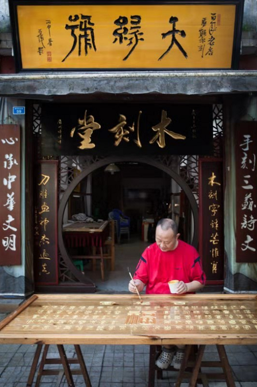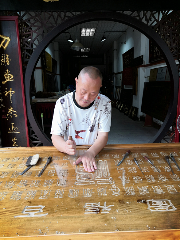 殊不知,这些木刻作品都出自眉山非遗“刘氏匾联木刻技艺”。历经数十年的努力,刘氏匾联木刻技艺的传承人,用刻刀坚守和传承这份珍贵的传统手工技艺,经过三代接力,最终完成三苏祠内匾额楹联的木刻工作,对东坡文化的传承和弘扬,做出了突出贡献。