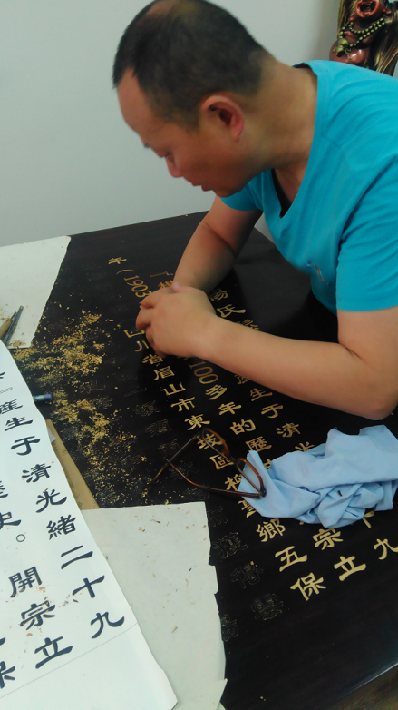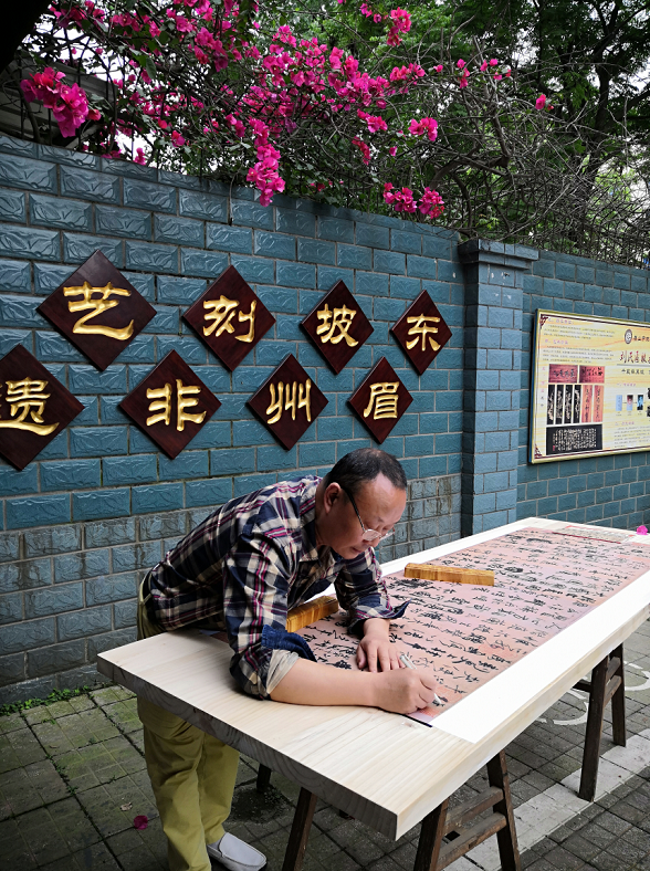 两宋时期,古眉州刻版印刷技艺极盛,与浙江般州、福建建阳合称为全国三大刻版印刷中心,其技艺精湛、版面精美,深受天下读书人喜爱。因此而涌现了大批刻字匠人,其技艺代代家传师承,为刘氏匾联木刻技艺的形成奠定了基础。