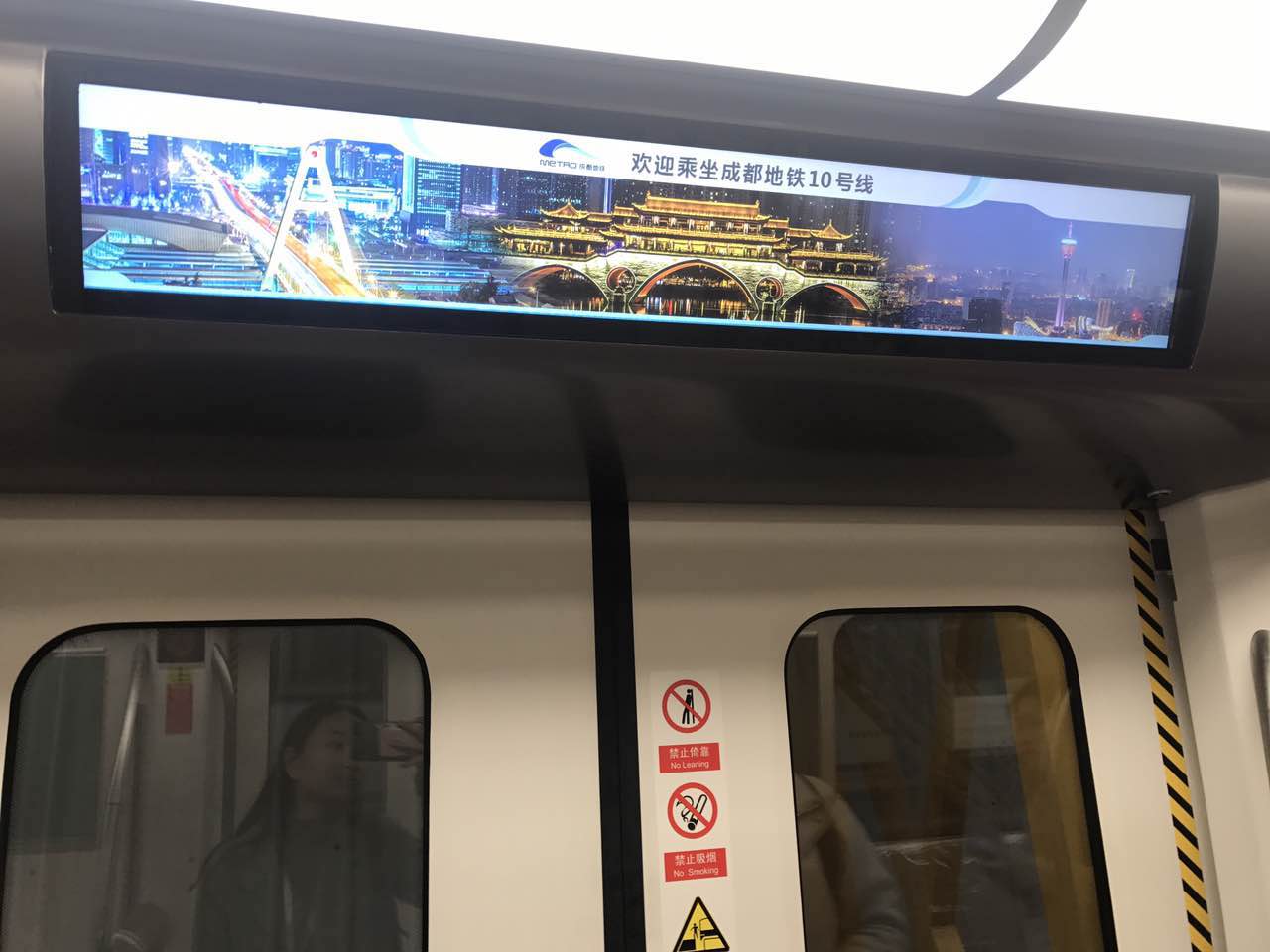 车门区域的电子地图首次采用37寸矩形液晶显示屏通过动态图片显示列车运行导乘信息,较传统led闪灯阵列式电子地图可以更加生动、美观、详细地为乘客提供乘车信息。
