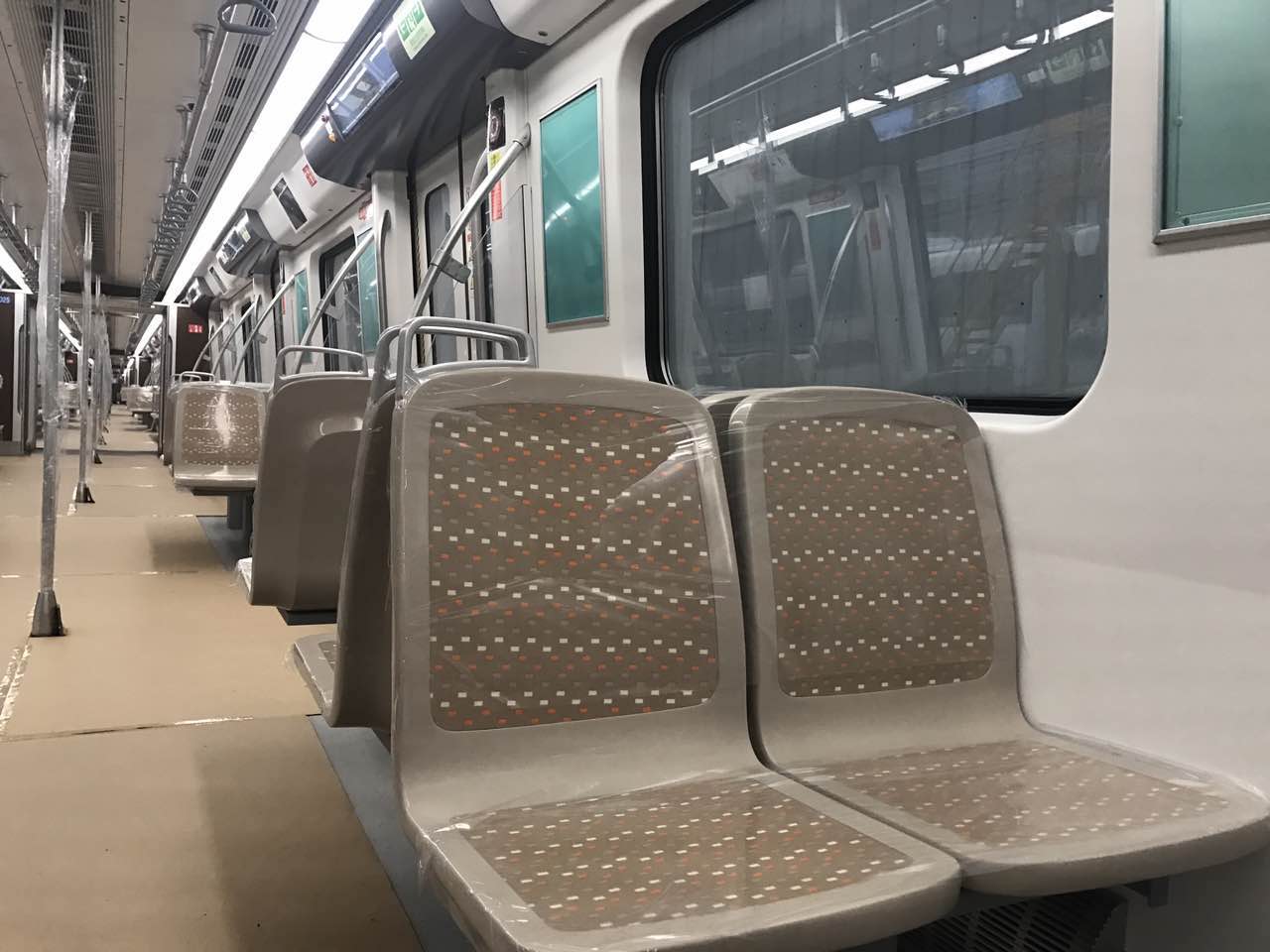 考虑到“机场专线”的属性,列车全车有一半的座椅采用横向布置方式,增加高速、长距离、大区间线路的乘坐舒适性。站立区域的乘客拉环与座椅之间距离更远,便于乘客放置和照看大件行李物品。