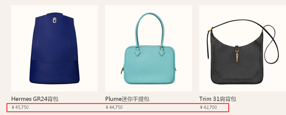 以爱马仕的箱包为例,在中国官网上,随便一搜,起价就是4万。