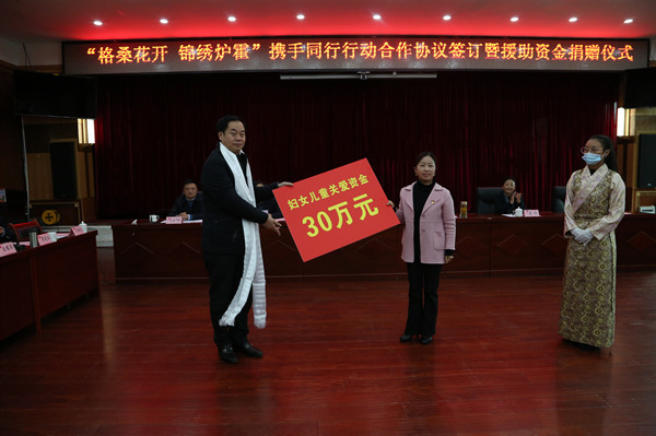 此外,社会各界力量也在奉献爱心。锦江区建筑行业协会作为爱心企业单位,向炉霍县贫困妇女儿童捐赠了30万,刘嘉介绍,这其中包括了坑吞拉姆读书期间的学费和生活费。