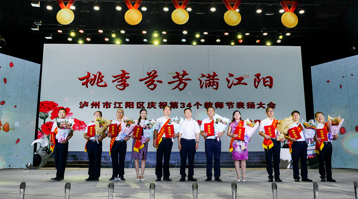 9月7日下午,在教师节来临之际,江阳区庆祝第34个教师节表扬大会在江阳艺术宫举行。此次表扬大会共评选优秀教师100名、优秀班主任40名、优秀教育工作者10名、知名教师30名、知名校(园)长10名。