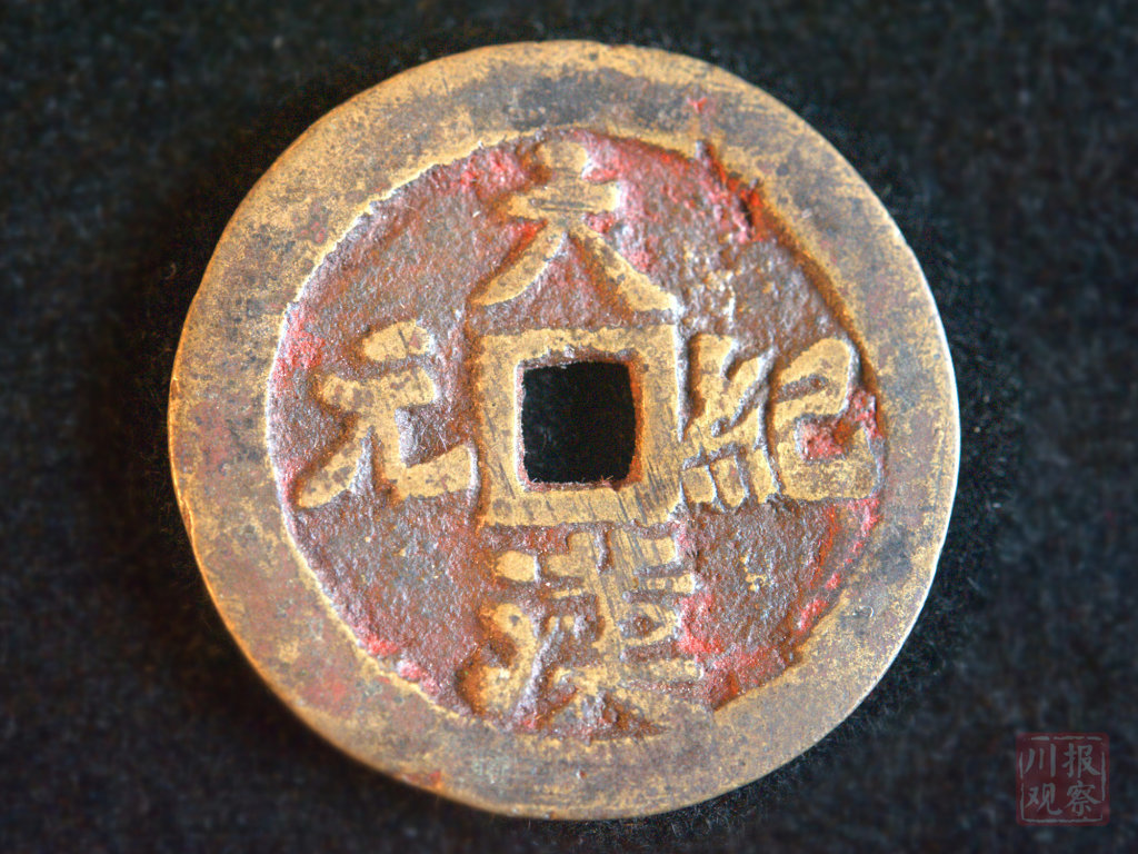 李可介绍,三国蜀汉政权还铸造了一种“直百五铢”钱,在背面铸地名“为”,意指钱币为四川犍为造。这也是中国古钱币中较早出现地名的货币,显示了川人不拘泥传统、不墨守成规的创新精神。