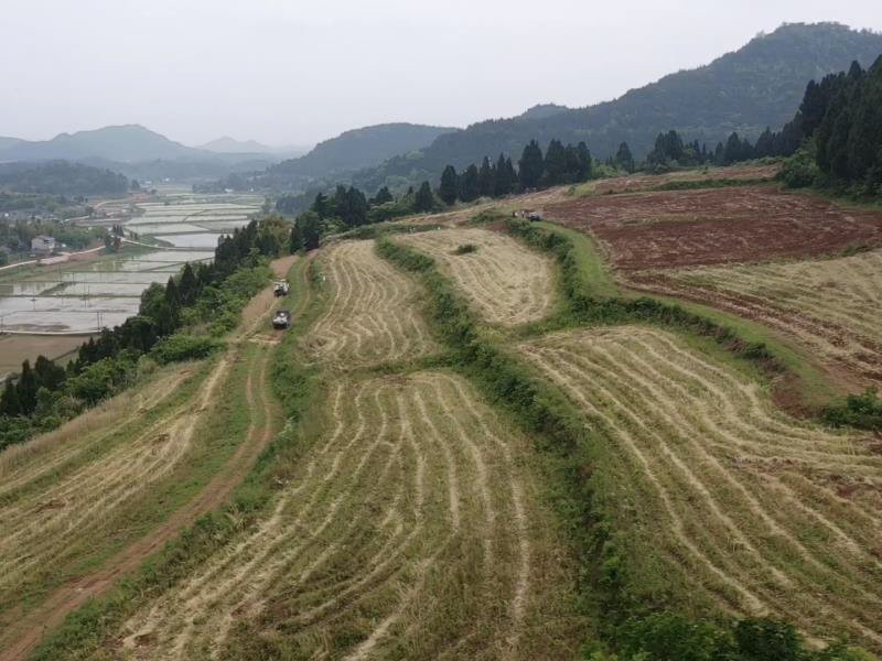 在丰乐院村,这几天收割机、旋耕机正开足马力收割油菜、翻挖土地,为下一步播种高粱做准备。“这一片以前都是撂荒地,经复垦后,我们种上了油菜、小麦等作物。目前,油菜收割工作已接近尾声,为了让土地不留空,这片地将马上播种高粱。”青小平说。