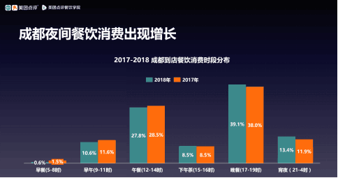 美团点评的数据还显示,2018年度美团外卖夜间餐饮消费交易额较2017年度增长47%,外卖成为夜间餐饮消费的重要方式。