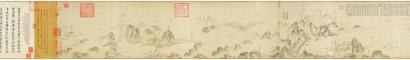 清初时,《蜀川胜概图》流入清廷宫中,藏于内府,甚得乾隆皇帝喜爱,被列为“乾隆四美”之一。该长卷右上方有乾隆御题“李公麟《蜀江卷》寻丈间有万里之势,脱尽笔墨痕与造物者游矣”款识。