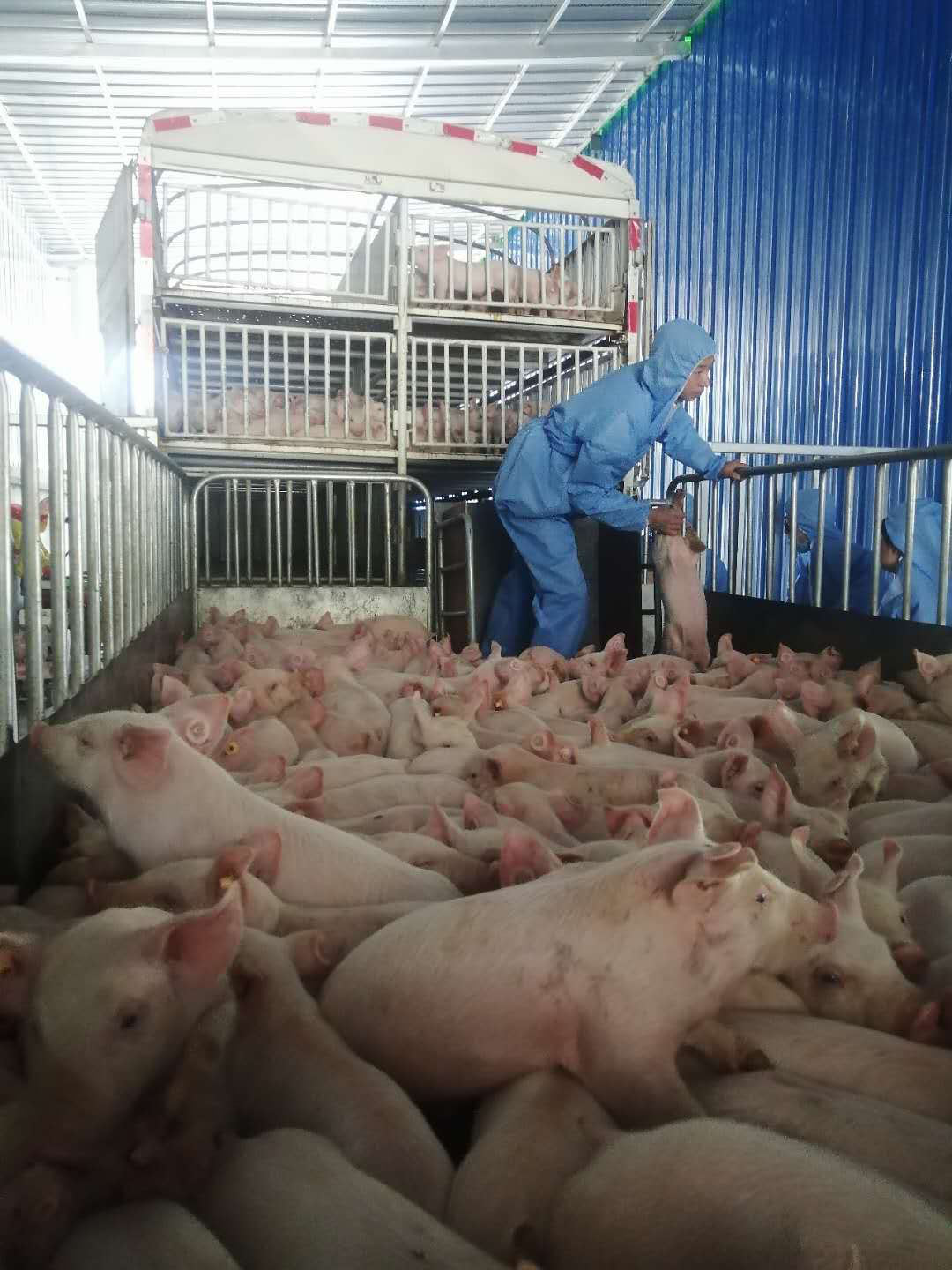 图为养殖合作社社员获得农担公司担保贷款后及时进行生猪填槽补栏