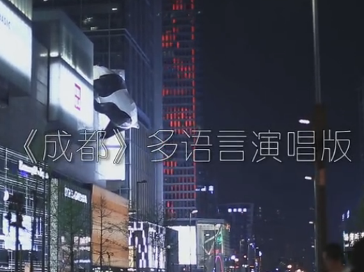 多语版《成都》由“飞鸦原创社”创作,来自四川大学、西南交通大学、西南财经大学天府学院、四川外国语大学成都学院等高校学生和外教共同演唱、出镜。不仅用四种语言对《成都》进行了演绎,而且还包含了宽窄巷子、锦里、火锅等具有代表性的成都文化元素,美丽的成都夜景和充满青春活力的演唱结合在一起,MV的效果丝毫不输明星的大制作。