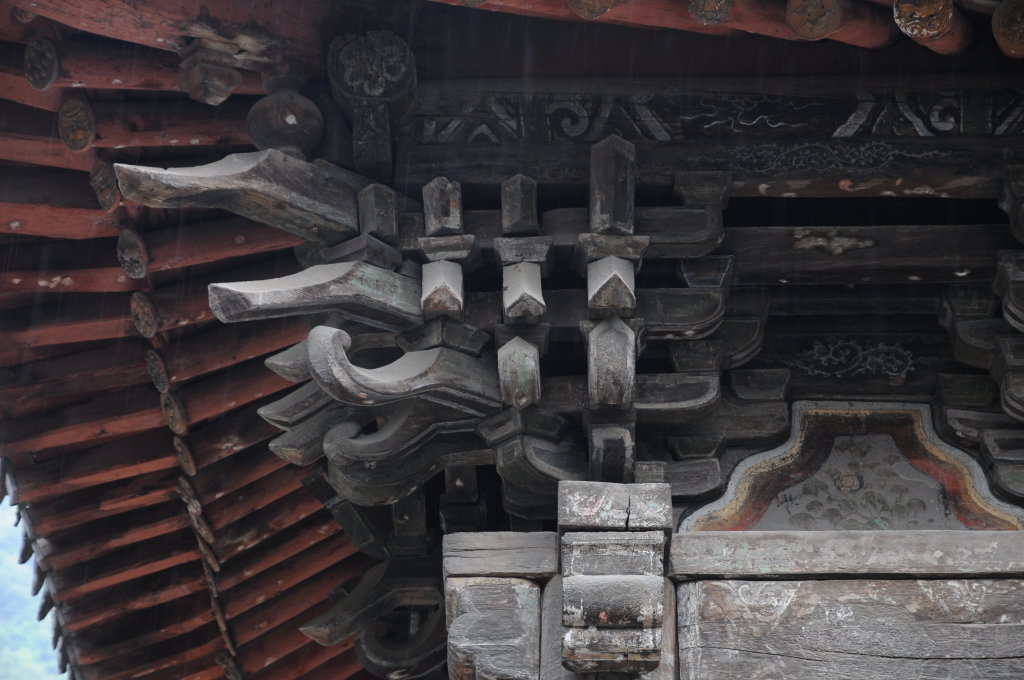 传统手工艺,在此次修复中大量使用。新补的琉璃砖雕,可以看得出手工雕刻的痕迹;大殿上新更换的梁枋,用传统的锯子、刨子打磨;甚至石栏杆、栏板,也是当地匠人用錾子一下下打出来的。至于在地震中撕裂的部分墙体,其材料就是本地的黄泥、石灰和草绳……