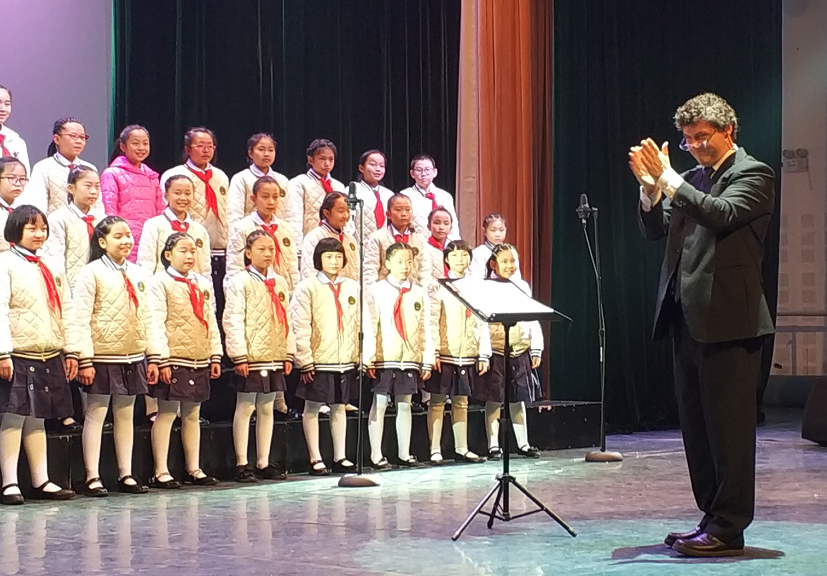 11月27日,在维也纳童声合唱团艺术总监杰拉尔德·维尔特指导下,来自成都市茶店子小学、四川大学附属实验小学等5支成都本土合唱团,在蓉城唱响“最美天籁之音合唱音乐会”,用歌声作为维尔特成都之行的教学成果献礼观众。