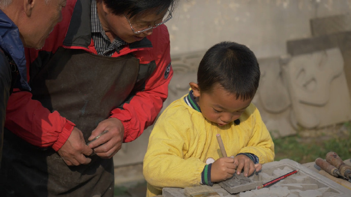 为了将砖雕技艺发扬光大,张彦如今对外招募弟子,最小的弟子如今只有4岁半,来自西安,从两岁半就利用暑假时间到北京跟着张彦学习,已经能雕出一些简单的图案。孙冕告诉记者,在拍摄纪录片时,拍摄到这位小弟子,看到小小的身影心无旁骛,静静地沉浸在砖雕之中,老狼和张彦都静默了很久,自己则等在一旁,不敢去打扰他们。