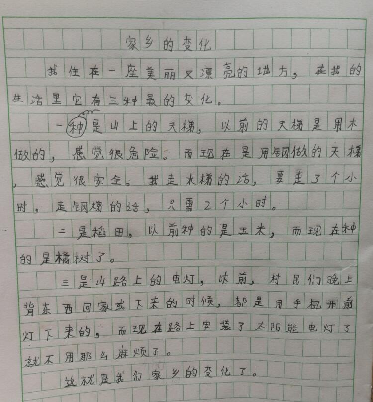 悬崖村的两名小学生用朴实的话语写出了《家乡的变化》