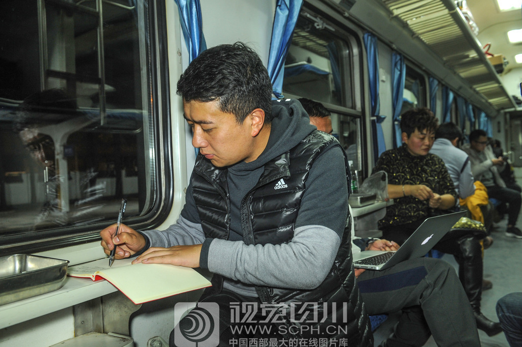 带着村民重托的阿吾木牛代表在列车上奋笔疾书,书写议案