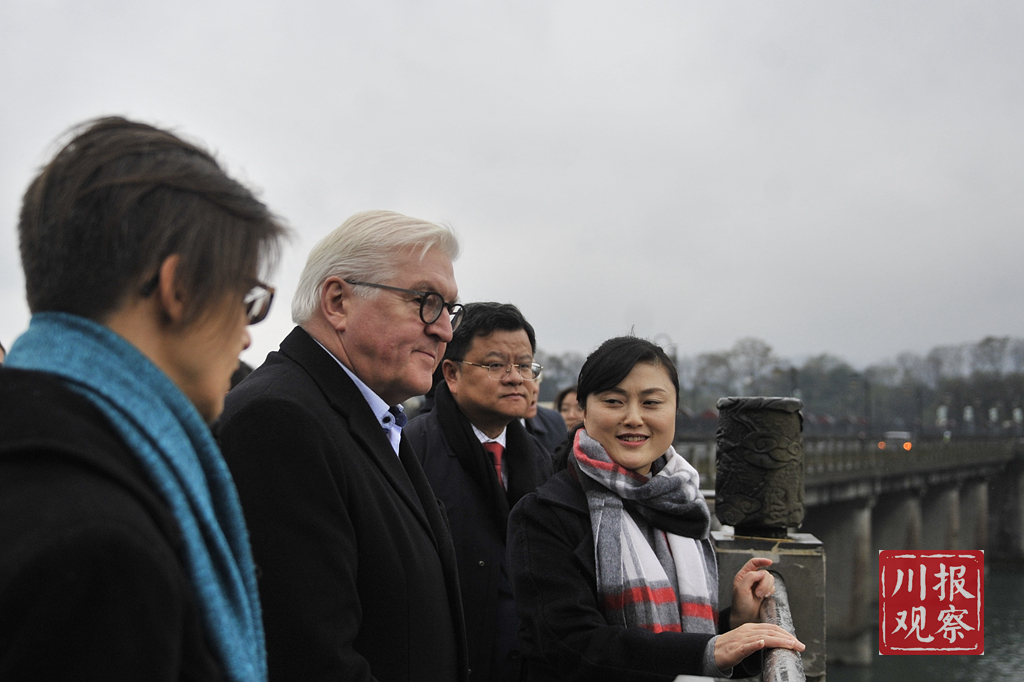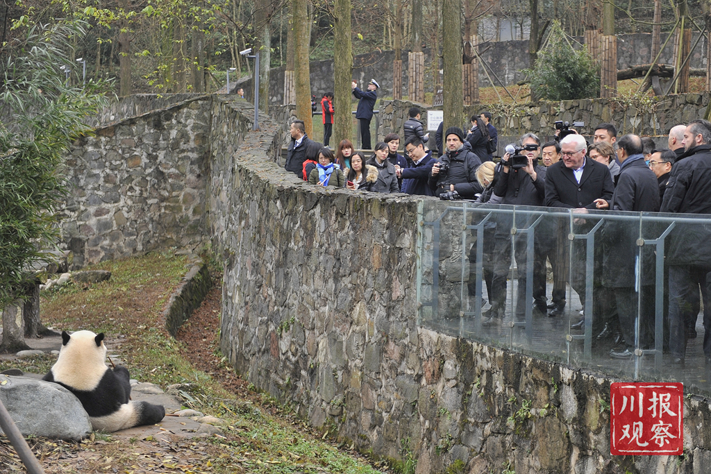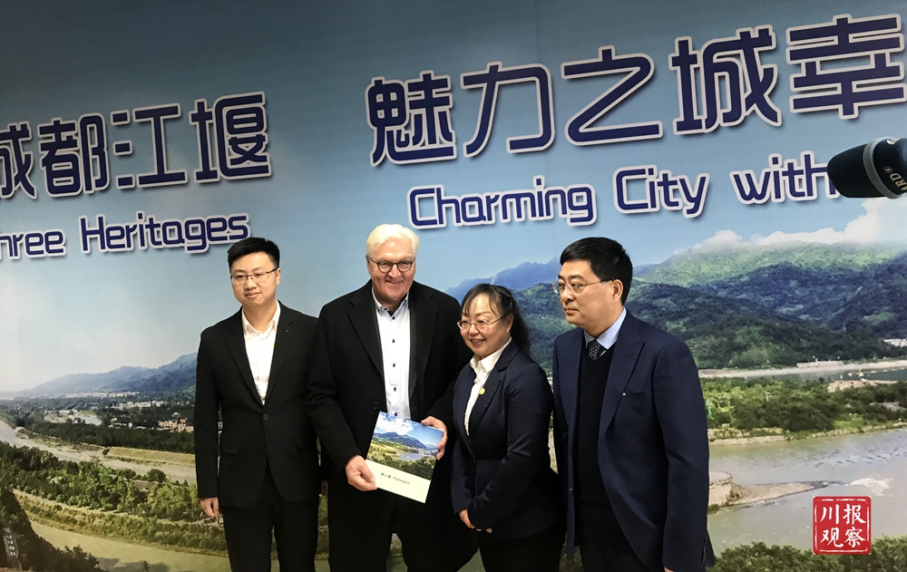 接下来,施泰因迈尔一行又分别前往都江堰水利工程和中国大熊猫保护研究中心都江堰基地参观考察。