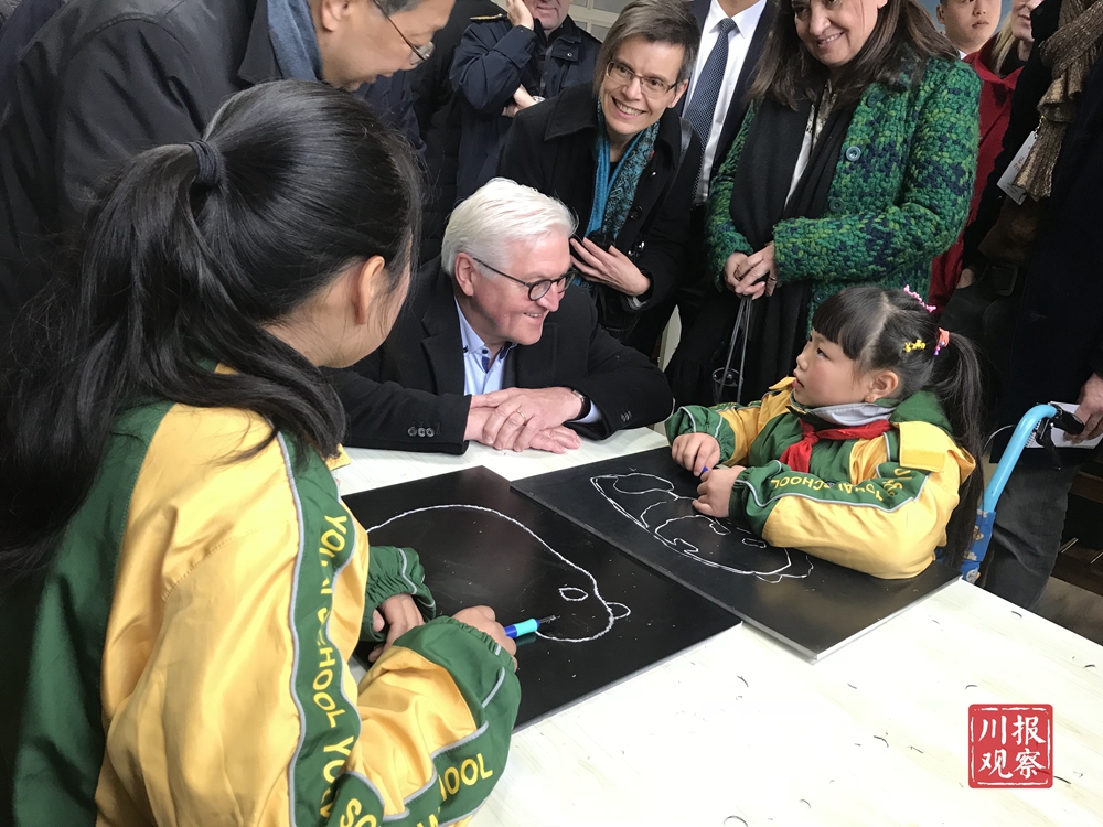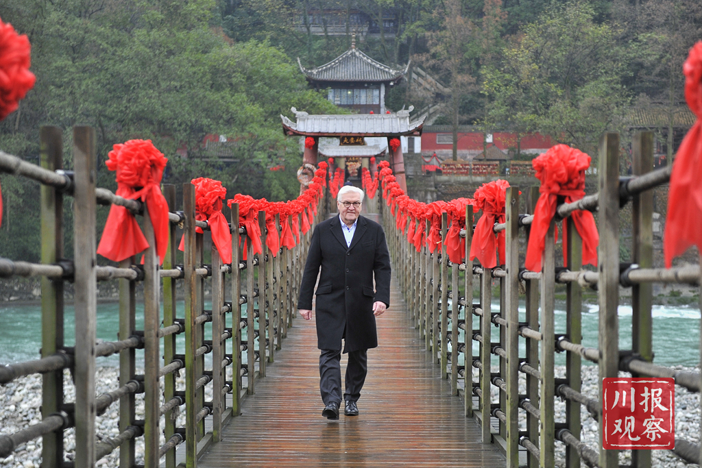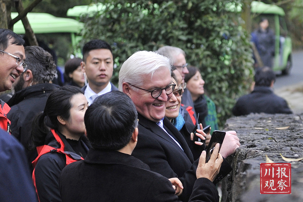严寒挡不住德国总统施泰因迈尔访川的热情。当天,故地重游的施泰因迈尔一路兴致勃勃,亲切、和蔼、慈祥、童趣,这些形容词在这位国家元首的身上体现的淋漓尽致。