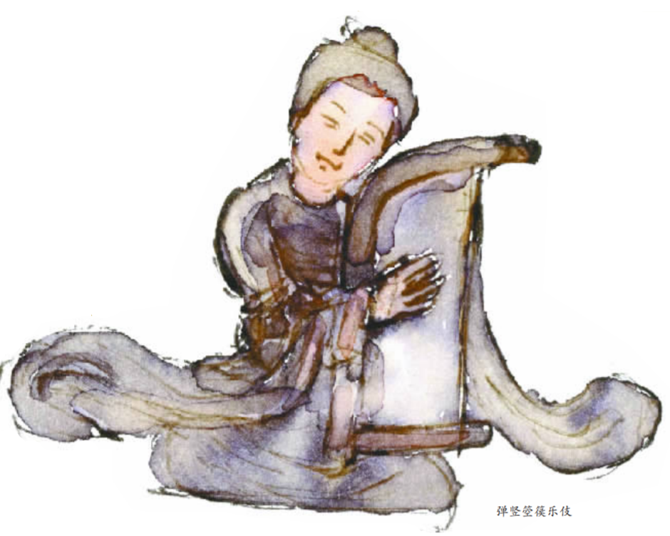 24乐伎中的弹竖箜篌乐伎。 马千笑 手绘(图据成都晚报)