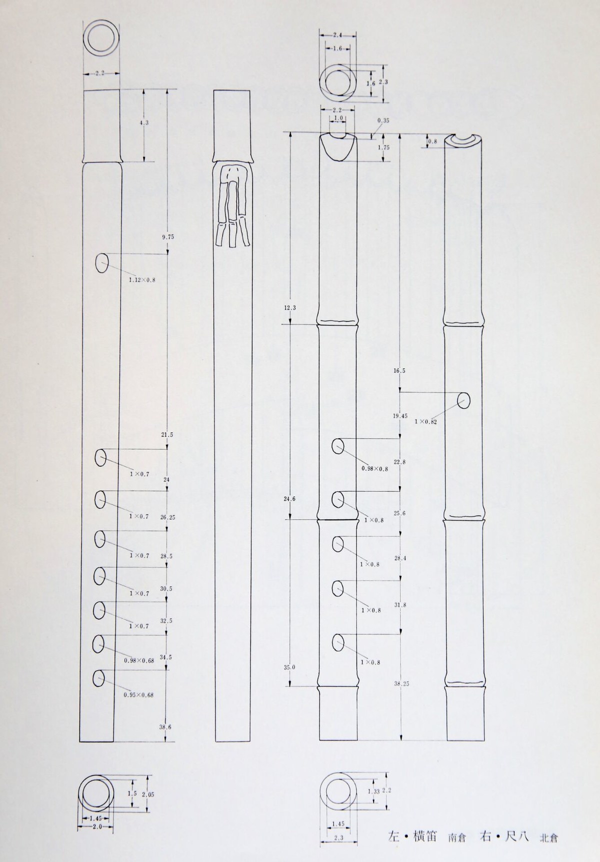 日本正仓院60年代调查的唐笛(左)丶唐尺八(右)图纸。
