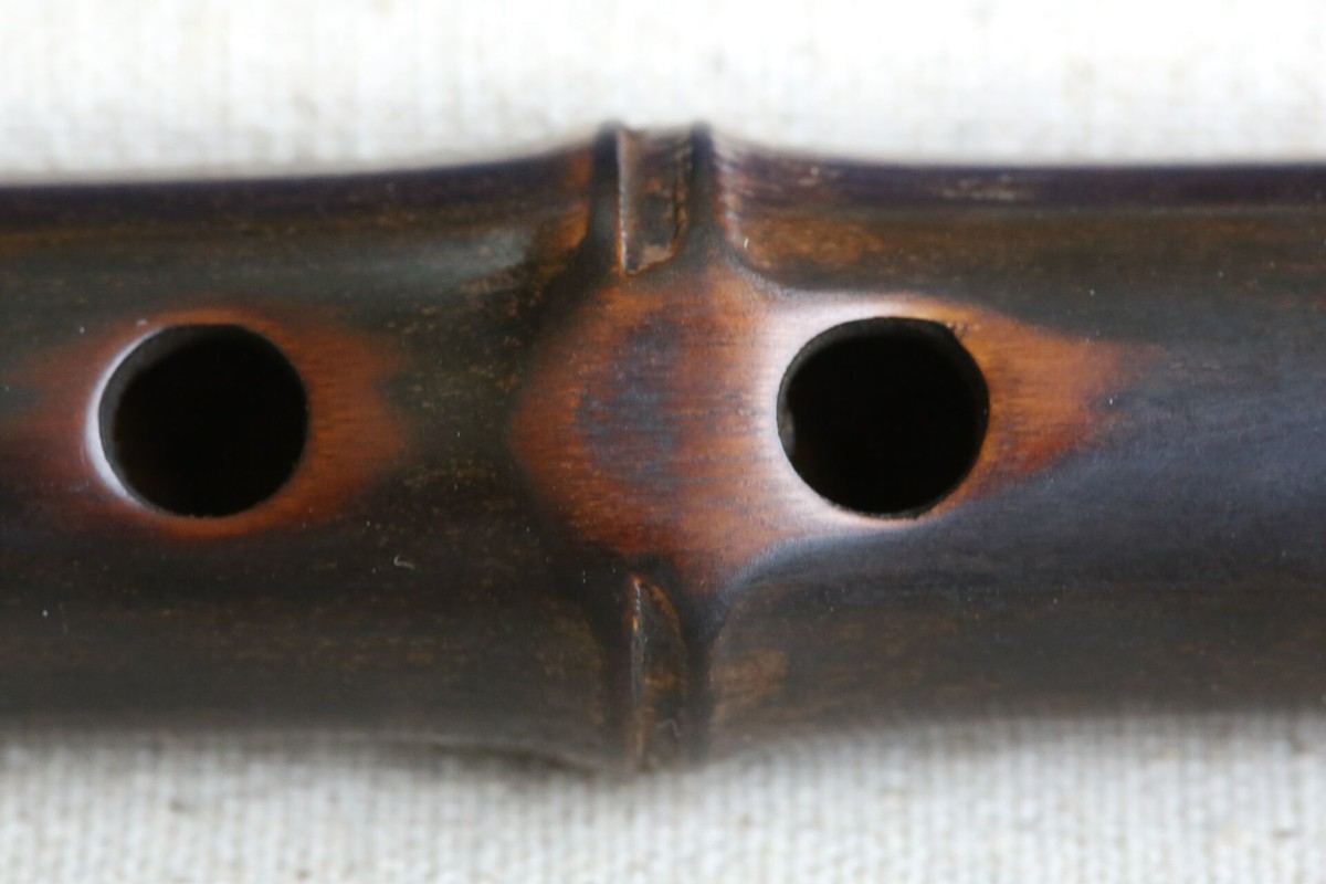 然而,唐笛与现代笛子不同的是,在它的顶部有一个竹杈做成的装饰,就象今天的手机链,是一种唐代的审美。