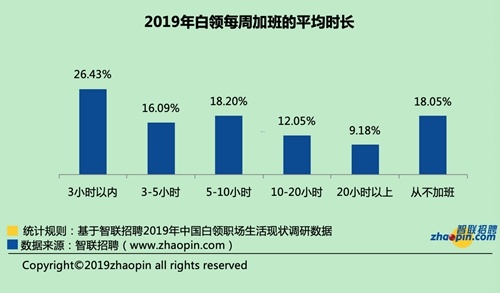 “八成白领表示加班是常态,其中每周加班10小时及以上人数的超过20%。”3月28日,智联招聘基于11024名职场人士的问卷调查发布《2019年白领生活状况调研报告》(简称《报告》)显示,加班已经成为了普遍现象。