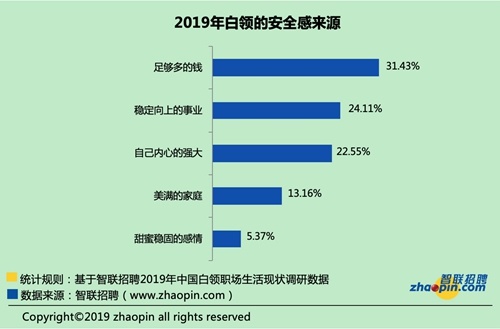 情绪奔溃可能是偶尔,然而焦虑却可能长期伴随。探索白领焦虑的来源,主要是因为“缺钱”以及担心“失业”。与此相对应,安全感也来自于金钱和事业。看来有个赚得多、有前途的好工作才能有源源不断的安全感。