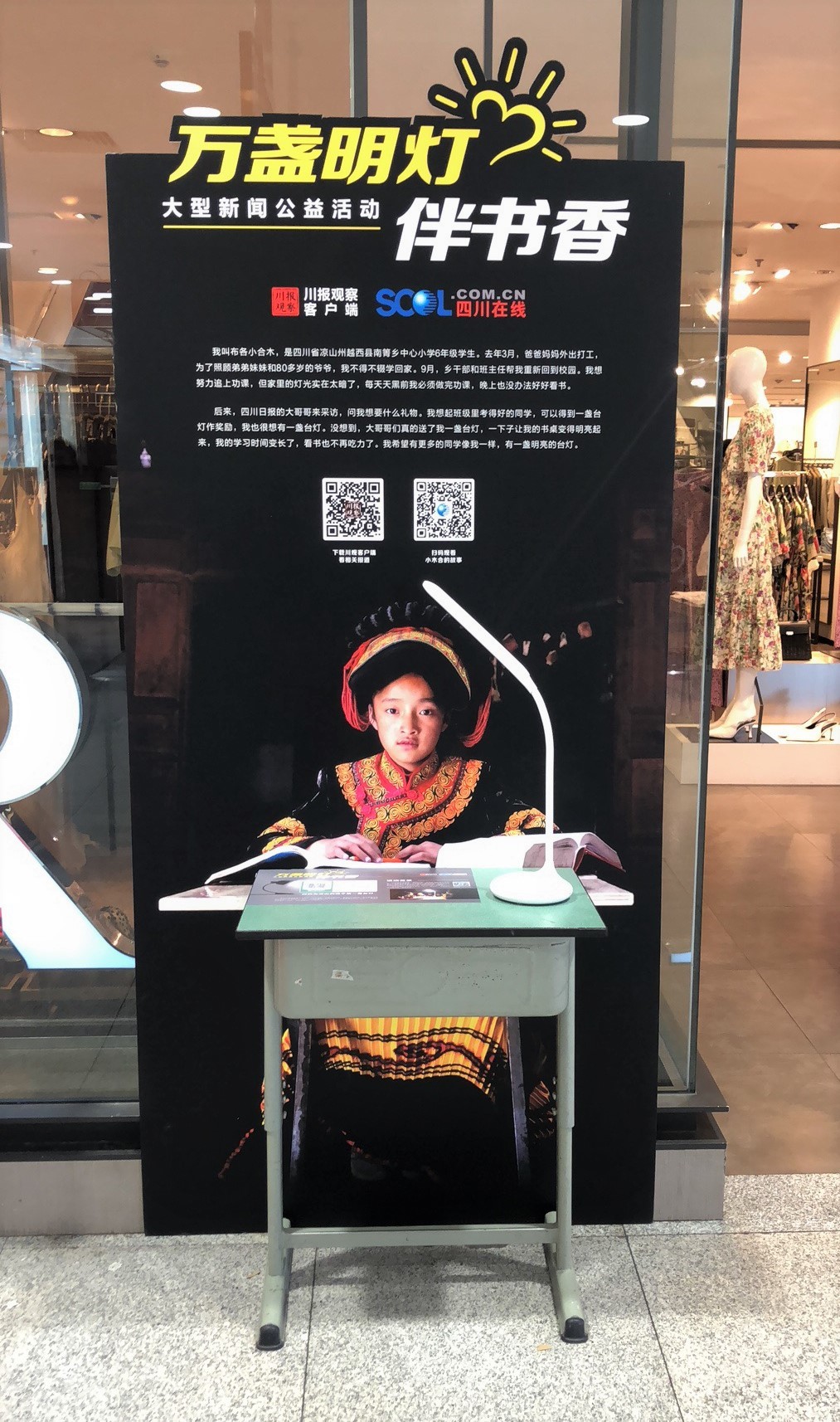 对网友们无处安放的热情,川报全媒体集群立即联系凉山州教育基金会,商定设置互动区域体验,邀请网友参与爱心活动。同时,成都地铁、成都伊藤洋华堂迅速响应此次大型新闻公益活动。即日起,成都市区将设置18个互动体验区,邀您一起摁动“开关”,在“六一”儿童节来临前,为孩子们点亮一方书桌,和一个光明的未来,实现为凉山贫困孩子捐一盏台灯的小愿望。互动体验将于即日起,持续至6月1日晚。