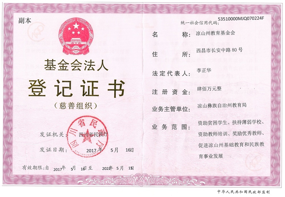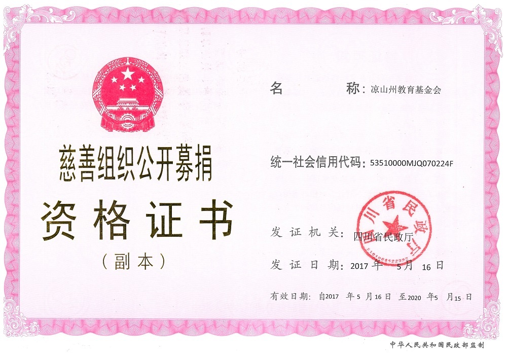 接收地址:四川省凉山州西昌市长安中路80号凉山州教育基金会