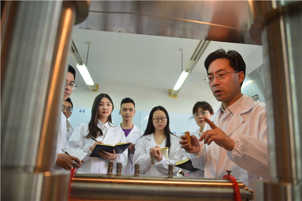 压裂酸化团队成员指导学生做实验 。李俊豪 摄