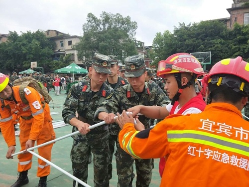 6月18日,武警四川省总队投入近800名兵力,携带侦检搜索、破拆、顶撑、绳索救援,生命探测仪等专业救援设备,继续担负搜寻被困群众、抢救转移伤员、安置群众、医疗巡诊等任务。