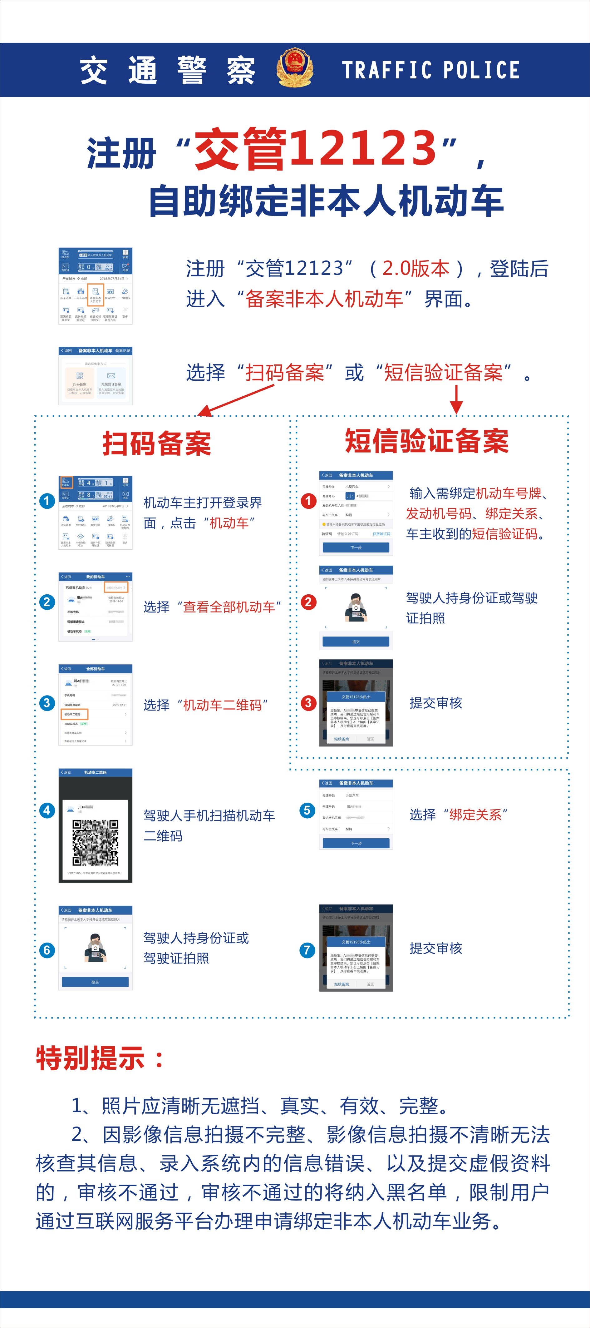 民警介绍,在注册完成后,如果是非本人处理该车电子眼记分,需要在网上进行备案,“打开交管12123平台,进入‘备案非本人机动车’选项,有两种可网上备案的方式。”