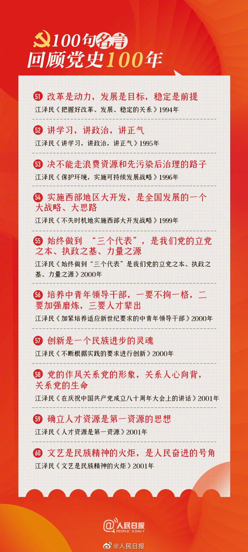 认真回顾走过的路,不能忘记来时的路,继续走好前行的路。建党百年,初心不变。#中国共产党100周年#,100句名言,重温峥嵘岁月↓↓转存学习!