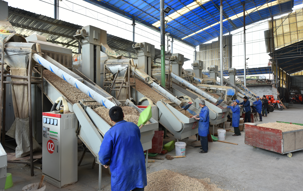 在花园镇明志麦冬加工专业合作社,数台搅拌机正在清洗麦冬、10余套滚筒式烘干设备正在有序运转,20余名工人正忙着操控现代化温控设备、分拣装袋、打包发货,井然有序。