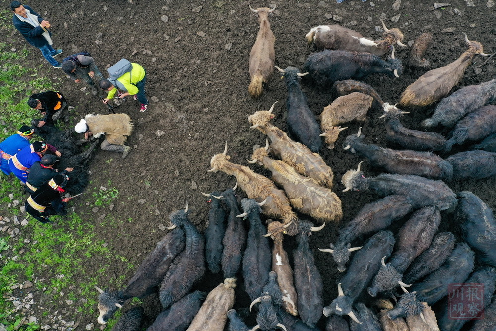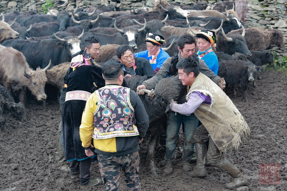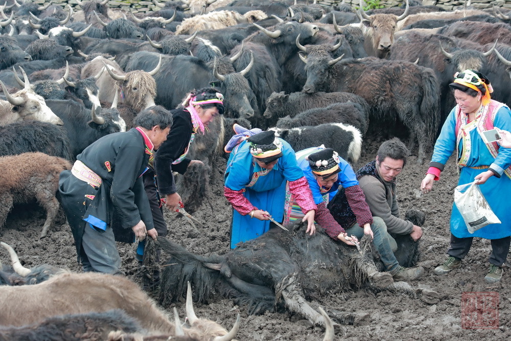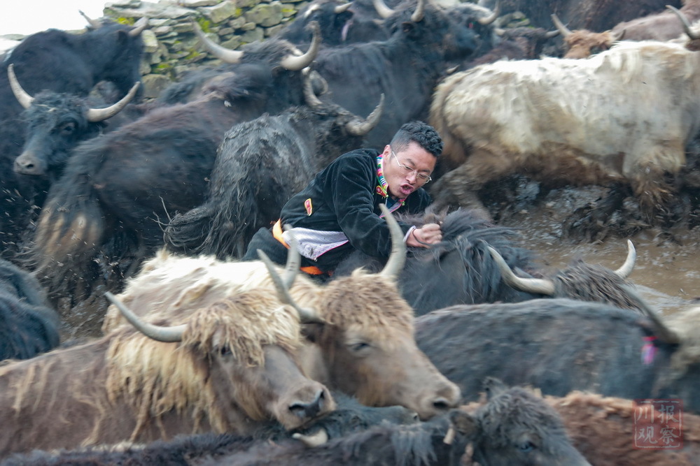 赶牛、擒牛、剪毛……活动现场,数十名藏族汉子穿梭于上百头牦牛之间,没有机械辅助,工序也并不复杂,但每一次人和牦牛的正面“硬刚”,都充满了力量与技巧、勇气与智慧的较量。