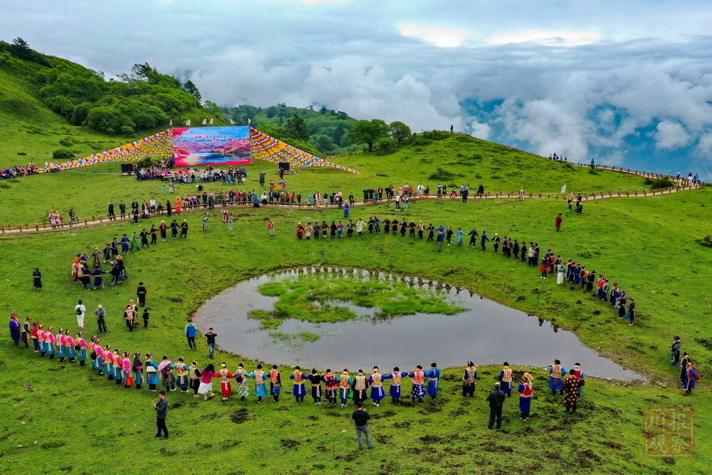 “遥望高高的美丽神山,云游中有着一条通天的路……”6月26日上午,在歌曲《达瓦更扎》的美妙旋律中,中国·宝兴2019夹金山剪牦牛毛传统民间民俗文化节活动在宝兴硗碛藏乡达瓦更扎山腰间举行。