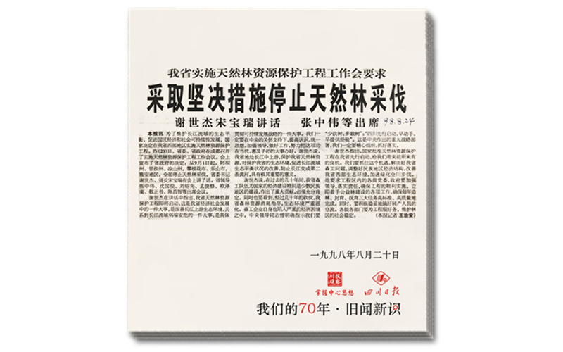1998年8月28日,本报刊发《10万森工:放下斧头 遍山种树》长篇通讯,率先发出“把砍树人变成造林人”的呼吁,指出了天然林保护工程的关键所在。这句话日后成为天保工程“流行语”。报道披露了天保工程试点区四川,在保护母亲河水源地、筑牢长江上游生态屏障上的努力,以及壮士断腕般的牺牲,发出“保护天然林,就是保护生态环境,就是保护家园”的呐喊。