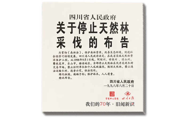 1998年8月23日,四川召开全省天然林资源保护工作大会,决定当年9月1日,甘孜、阿坝、凉山、攀枝花、乐山和雅安全面停止天然林商业性采伐。