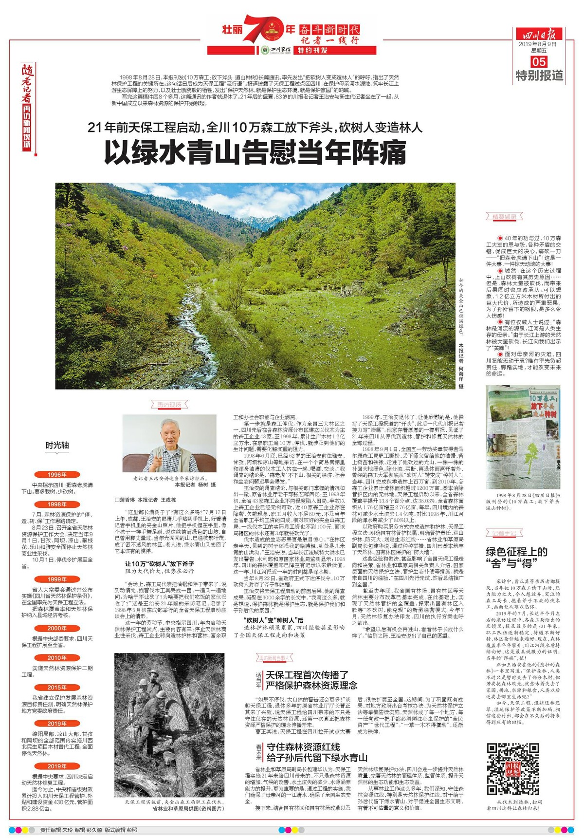 本组报道将持续至9月。这一期,让我们和83岁的川报老记者王治安一起,聊聊四川的绿水青山,聊聊当年的“阵痛”与努力。
