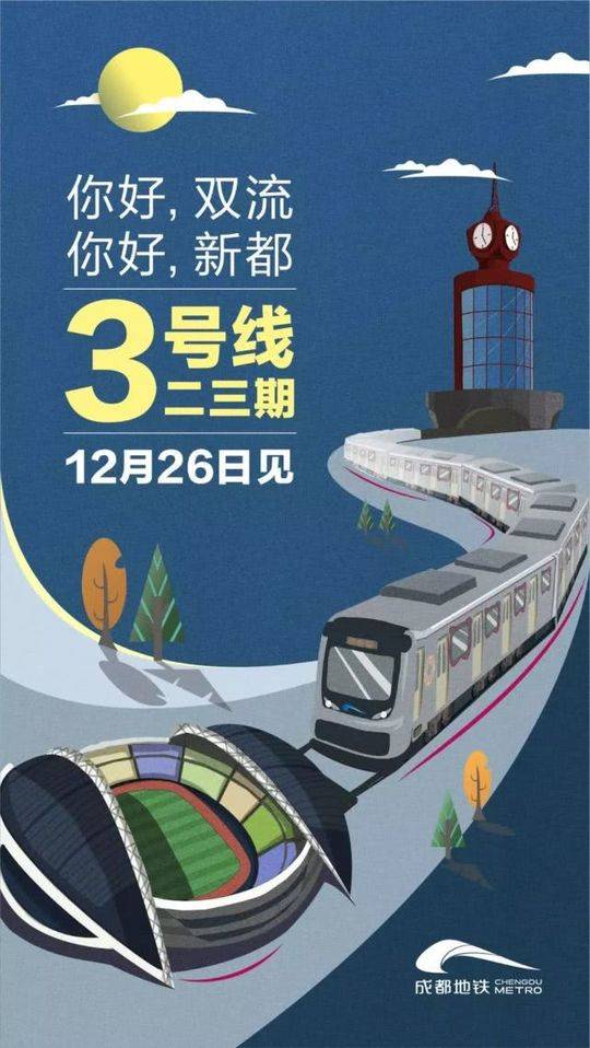 经市政府批准同意,成都市地铁3号线二三期工程将于2018年12月26日开通试运营。