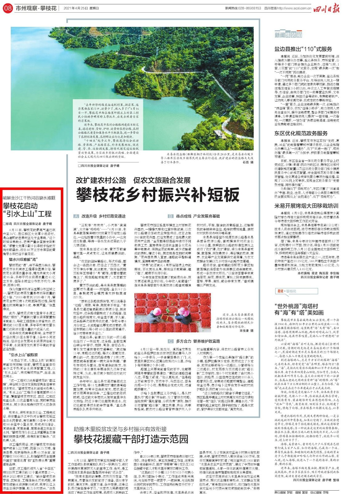 “这一工程可以说是攀枝花的‘都江堰’,将给城乡经济发展和居民生活带来很多变化。”攀枝花市水利局相关负责人说,“引水上山”工程设计灌溉面积65.6万亩,覆盖攀枝花市东区、西区、仁和区和盐边县,以农业灌溉为主,同时兼顾生态用水、城乡供水和森林防灭火应急供水等。