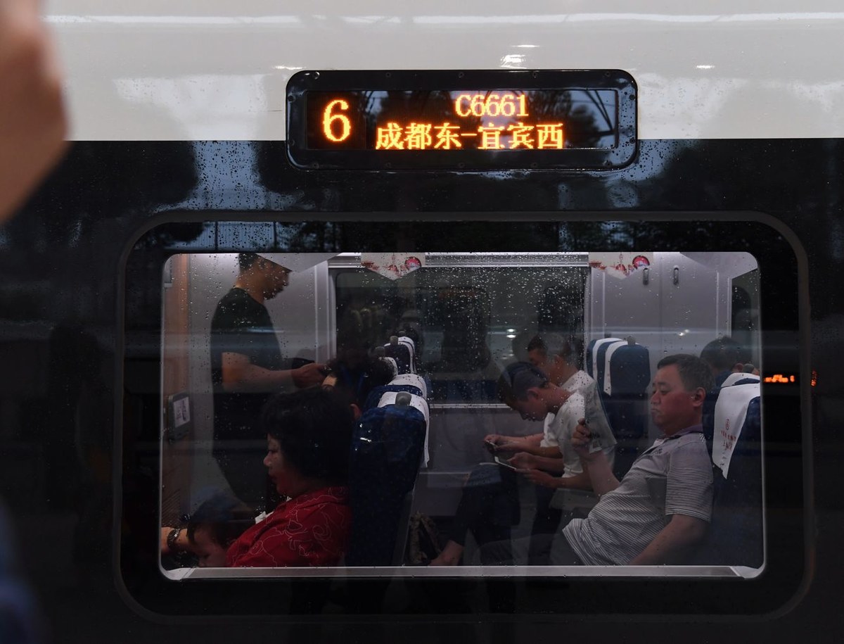6月15日8:22分,从成都东始发的C6661次动车抵达宜宾西站。这是成贵铁路乐宜段开通的首发动车,全程用时仅1小时29分。川南城市宜宾进入动车时代。