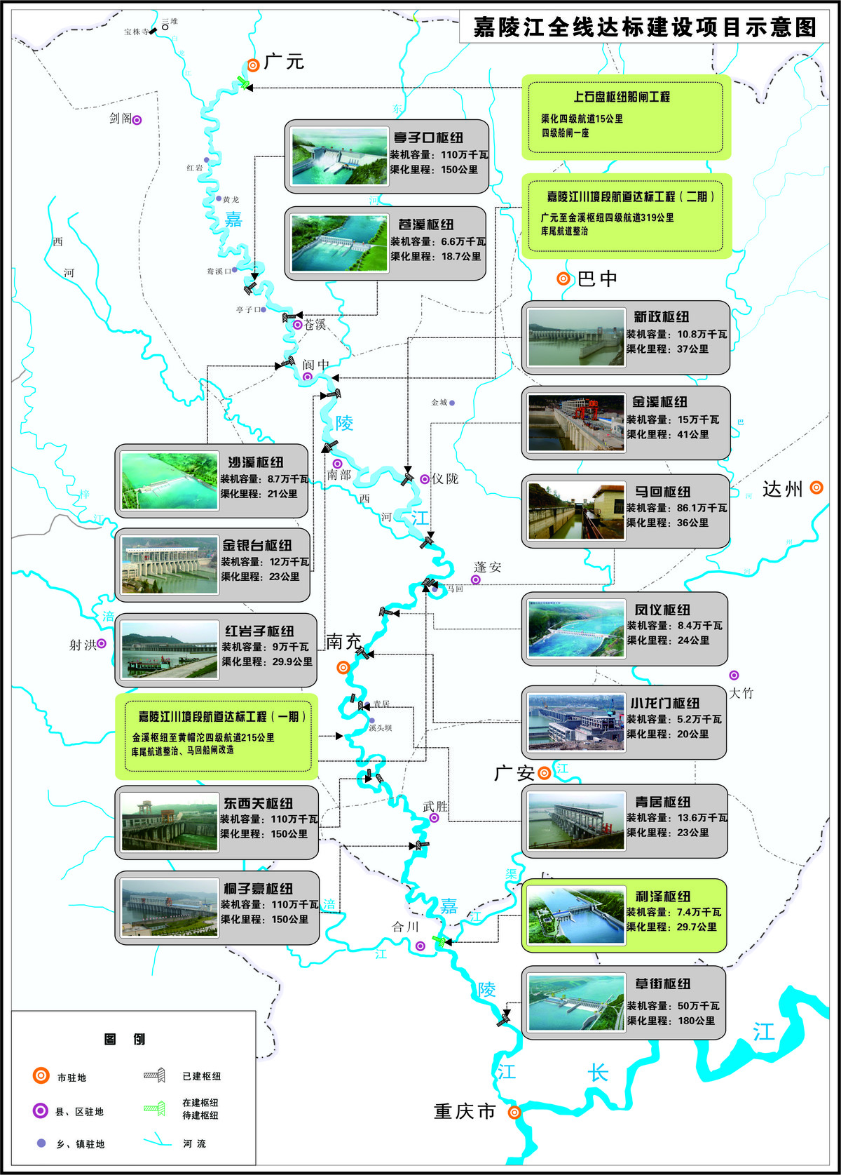 嘉陵江自古以来就是沟通南北的黄金水道,是长江水系的水运主通道和国家重要战备航道。曾经的嘉陵江,河流曲折,水流湍急,滩险礁石多,航行条件差,运输能力弱。经过近30年的综合开发利用,今天的嘉陵江通航条件已极大改善,正逐步成为真正的国家高等级航道和我省水路运输的黄金水运大通道。