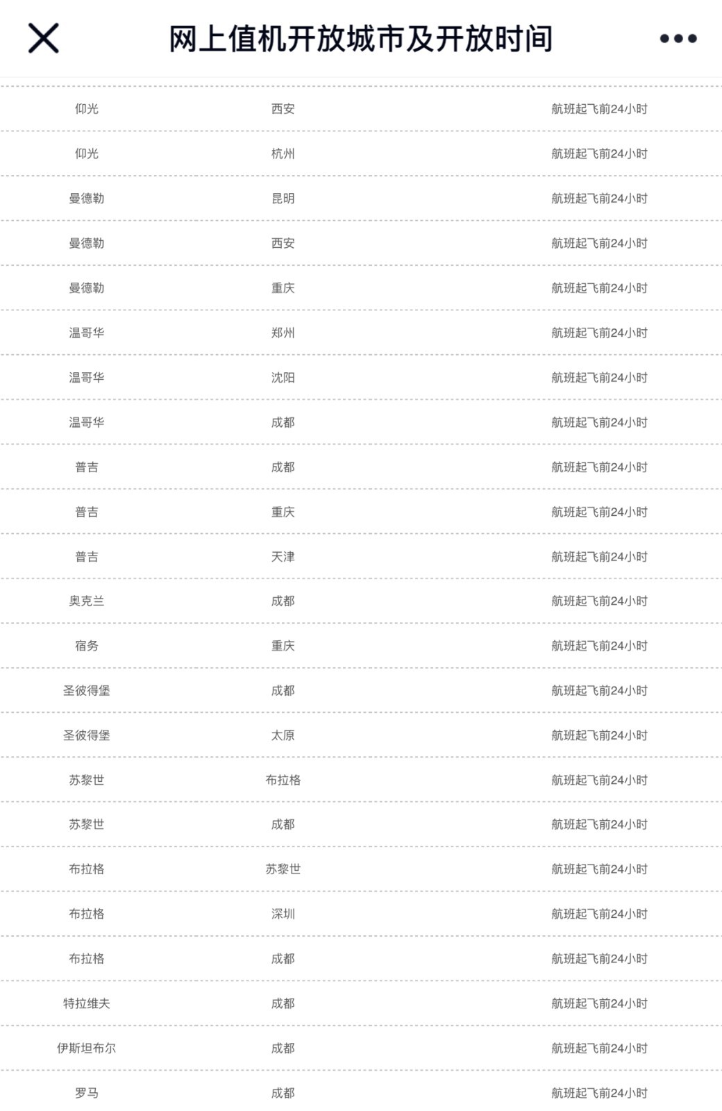 此次,川航还同时新增了境内23个航站网上值机功能。截至目前,川航支持网上值机的境内航站达到88个,其中74个航站支持国内航班二维码通关功能,旅客办理网上值机后,凭“电子登机牌”和有效证件即可通过安检、完成登机;川航国际(地区)航班支持网上值机功能的境内始发航线共计45条、境外始发航线达到51条,乘坐国际(地区)航班的旅客,通过网上值机完成座位选择后,仍需在航班截载(即停止办理登机牌和行李托运业务)之前到机场川航人工柜台验证旅行证件,并打印登机牌。